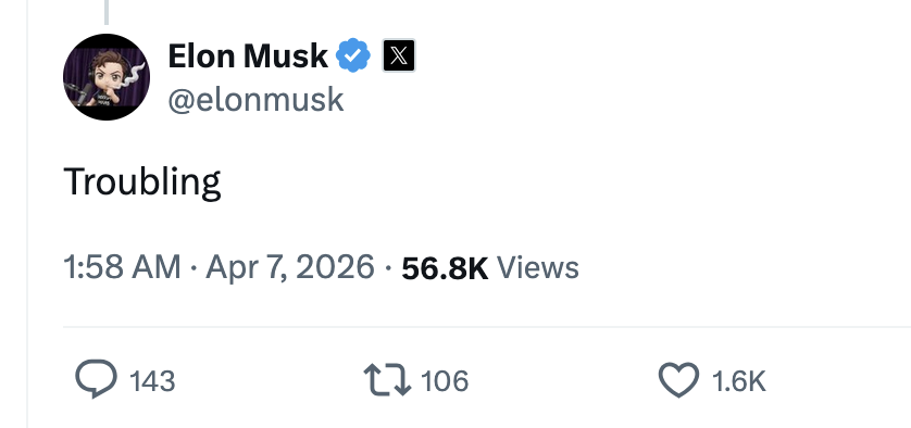 One of the first replies to the X post was from Altman's longtime critic, Elon Musk, who simply posted: "Troubling."
